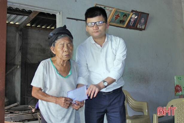 | Anh Hồ Sỹ Phong trao quà từ Quỹ Mái ấm hướng thiện cho hội viên tại xã Hồng Lộc (Lộc Hà). |