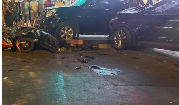 Nhân chứng cho hay, va chạm xảy ra giữa 4 ôtô bao gồm một xe SantaFe, một xe biển đỏ, một chiếc taxi 5 chỗ, một xe bán tải. Các phương tiện này sau đó va vào nhiều xe máy.