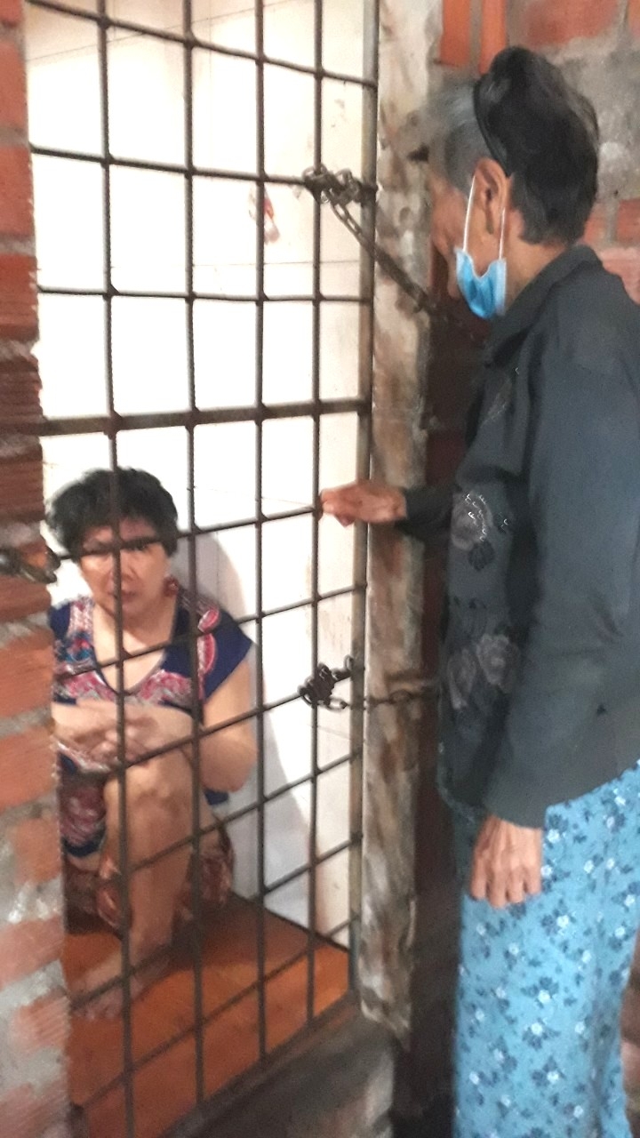 | Bà Tư Bê gần 90 tuổi hàng ngày vẫn phải vất vả chăm con gái bị "nhốt" trong phòng. |