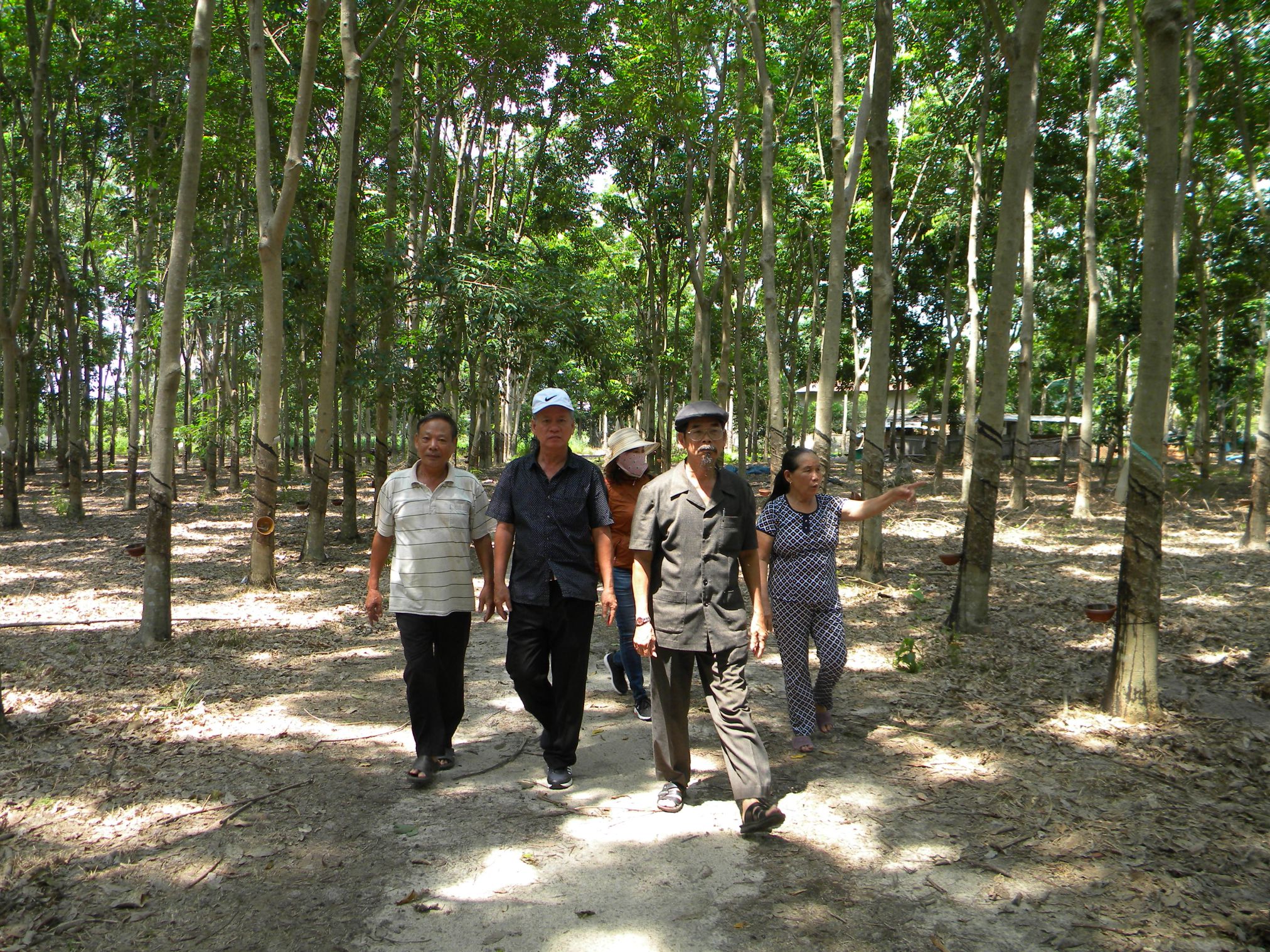 Ông Trần Tiến Thành, Chủ tịch Hội NNCĐDC/dioxin tỉnh Bình Thuận (đi đầu) thăm vườn cao su của nạn nhân