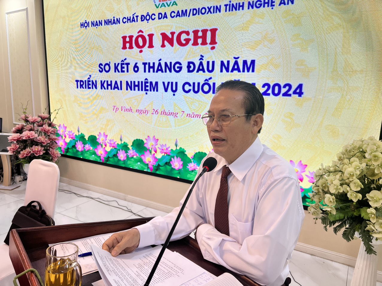 Đạt được những kết quả như trên là do đã thường xuyên giao ban Cụm để các Hội giao lưu, học hỏi kinh nghiệm trong công tác hội, nâng cao hiệu quả hoạt động của các cấp hội. 6 tháng cuối năm 2024, hướng tới hành động vì nạn nhân chất độc da cam năm 2024 và kỷ niệm 63 năm Thảm họa da cam ở Việt Nam (10.8.1961 - 10.8.2024). Tỉnh hội Nghệ An đã ban hành kế hoạch và văn bản hướng dẫn các Hội cơ sở triển khai chương trình của Trung ương Hội chỉ đạo. Các cấp Hội chủ động, căn cứ tình hình của địa phương, báo cáo cấp uỷ, chính quyền, Uỷ ban MTTQ cùng cấp; phối hợp với các tổ chức đoàn thể, doanh nghiệp, cơ quan truyền thông triển khai thực hiện các nội dung đã phổ biến, ban hành; đồng thời làm tốt công tác tuyên truyền, vận động ủng hộ NNCĐDC.