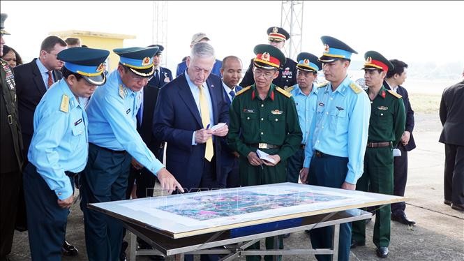 Bộ trưởng Quốc phòng Hoa Kỳ James Mattis thăm địa điểm xử lý môi trường ô nhiễm dioxin tại sân bay Biên Hòa, Đồng Nai. Nơi Ban Chỉ đạo quốc gia khắc phục hậu quả bom mìn và chất độc hóa học sau chiến tranh ở Việt Nam (Ban Chỉ đạo 701) cùng Cơ quan Phát triển quốc tế Hoa Kỳ (USAID) triển khai dự án (năm 2018).