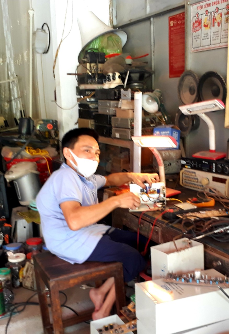 Hàng ngày Trương Văn Bình miệt mài sửa chữa đò điện cho khách hàng