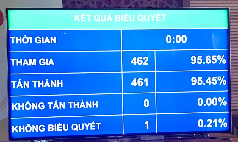 95,45% đại biểu Quốc hội tán thành thông qua Nghị quyết phê chuẩn Hiệp định Bảo hộ đầu tư giữa Việt Nam và Liên minh châu Âu (EVIPA).
