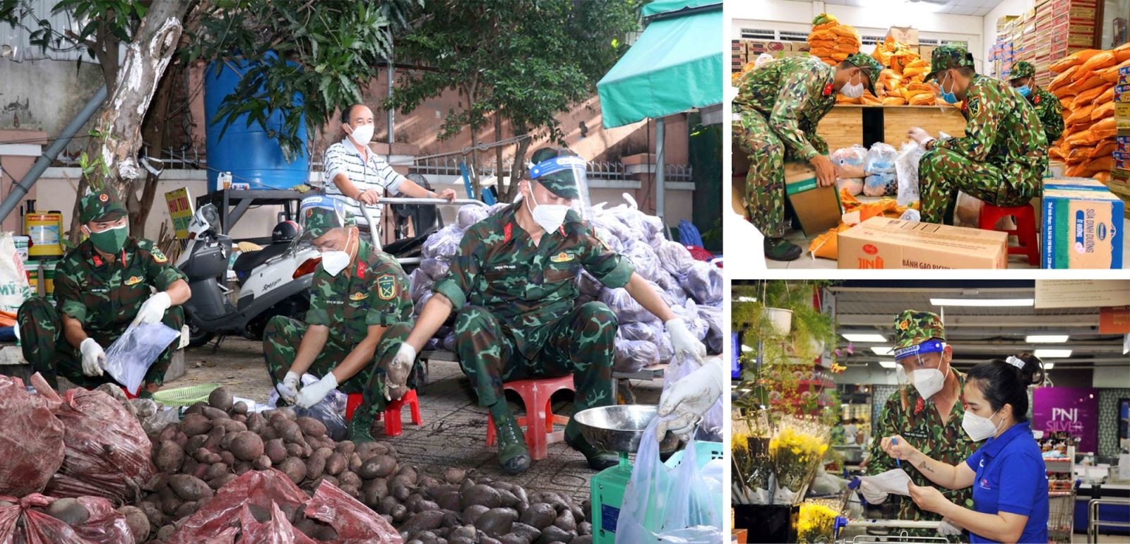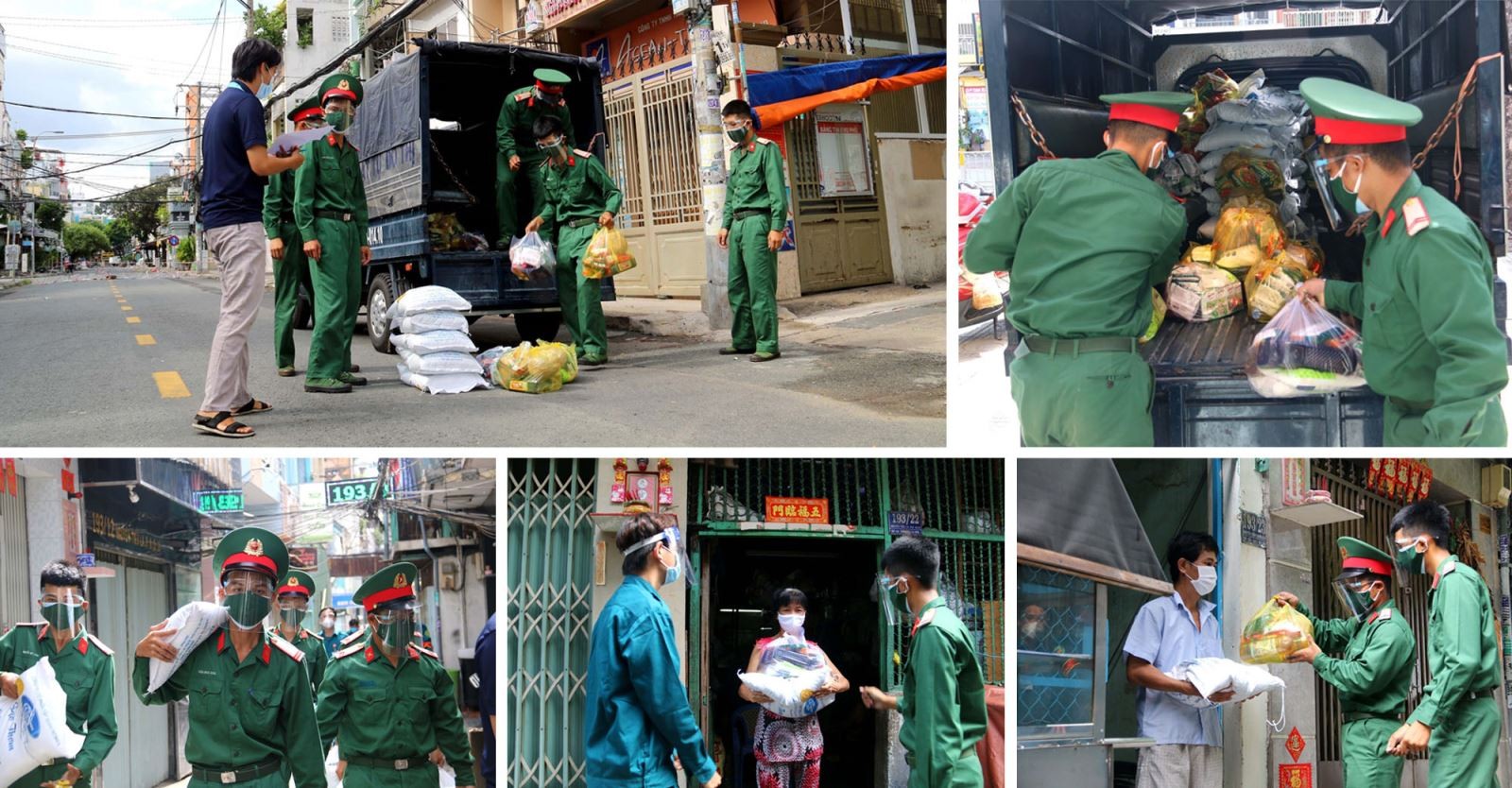 Với tinh thần “chống dịch như chống giặc”, Bộ Tư lệnh TP Hồ Chí Minh huy động hàng chục nghìn lượt cán bộ, chiến sĩ, dân quân tham gia thực hiện nhiệm vụ tại các khu cách ly, bệnh viện dã chiến, điểm phong tỏa và chốt, trạm kiểm soát dịch. Không chỉ xung kích tham gia phòng, chống dịch COVID-19, lực lượng vũ trang Thành phố còn phối hợp tổ chức nhiều chương trình thiện nguyện, chăm lo đời sống cho người dân trong các khu vực cách ly, khu phong tỏa; thăm, tặng quà, hỗ trợ lương thực, thực phẩm giúp người dân gặp hoàn cảnh khó khăn...