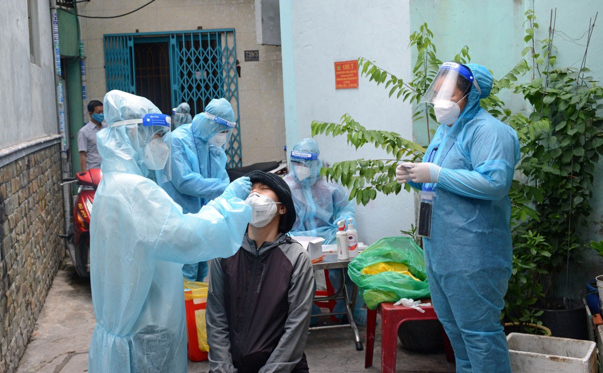 Tổ công tác Học viện Quân y phối hợp cùng địa phương lấy mẫu tầm soát COVID-19 tại phường 9, Quận 8, TP Hồ Chí Minh.
