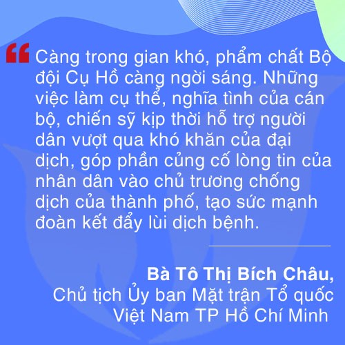 Trao đổi với phóng viên về sự hiện hiện và các hoạt động hỗ trợ của của những người lính bộ đội Cụ Hồ ở nơi tâm dịch, nhiều người dân TP Hồ Chí Minh đều có chung một cảm nhận, đó là “an tâm”, “xúc động”, “biết ơn” và càng có thêm niềm tin về khả năng kiểm soát dịch bệnh trên địa bàn.