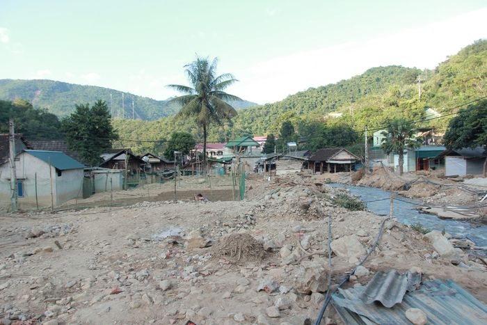 | Sau nhiều tháng, bản Hòa Sơn vẫn rất ngổn ngang do lũ quét |