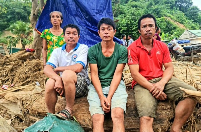 | Anh Vông (áo xanh ở giữa) cùng 2 người trong bản nhớ lại giây phút cứu hàng chục người. |