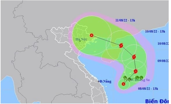 Theo ông Nguyễn Văn Hưởng, Trưởng phòng dự báo khí hậu của Trung tâm Dự báo Khí tượng Thủy văn Quốc gia, trước khi mạnh lên thành áp thấp nhiệt đới trong chiều nay (8/8), vùng áp thấp trên Biển Đông đã có hướng di chuyển khá phức tạp, liên tục đổi hướng tây, tây bắc, tây nam. Từ chiều nay (8/8), áp thấp nhiệt đới di chuyển theo hướng Bắc Đông Bắc, mỗi giờ đi được khoảng 10km.