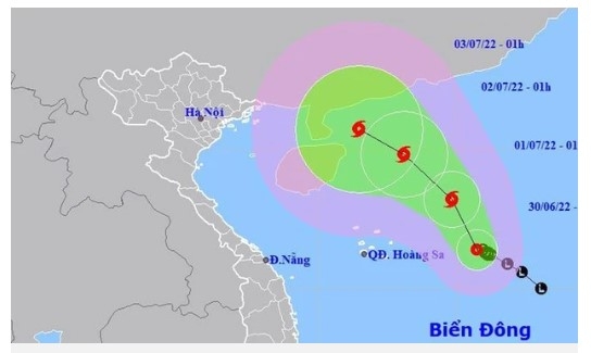Vào 1 giờ sáng nay (30/6), tâm áp thấp nhiệt đới cách quần đảo Hoàng Sa khoảng 460km về phía Đông. Sức gió mạnh nhất vùng gần tâm áp thấp nhiệt đới mạnh cấp 7 (50-61km/giờ), giật cấp 9. Bán kính gió mạnh cấp 6, giật cấp 8 khoảng 100km tính từ tâm áp thấp nhiệt đới.