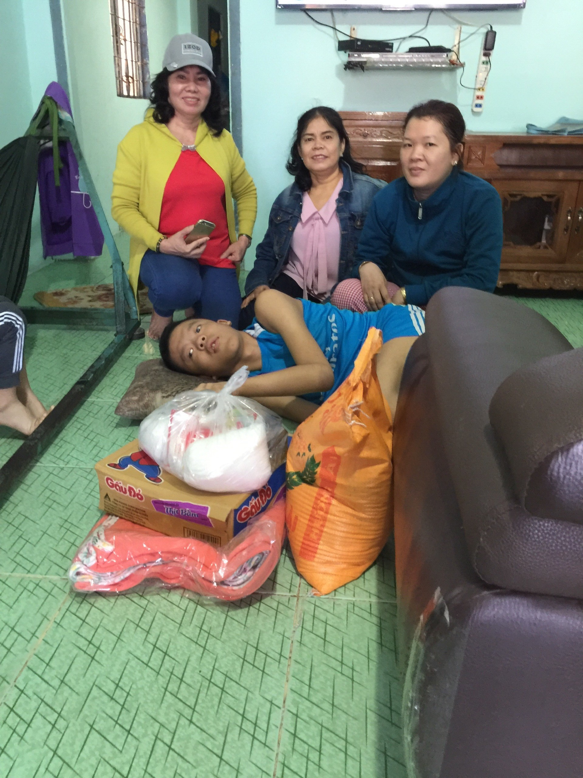 Bà Hứa Thị Nga (giữa) thăm, tặng quà cho NNCĐDC thị trấn Tân Biên