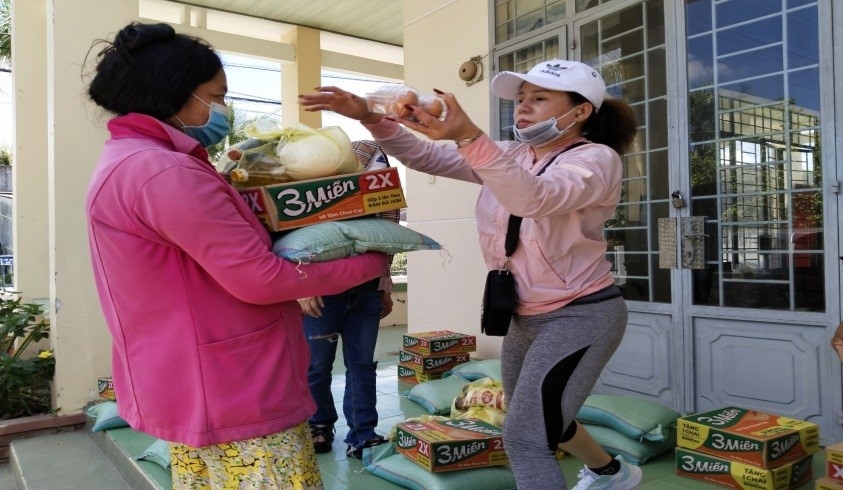 | Bà Nguyễn Thị Quỳnh Nga tặng quà cho NNCĐDC tại xã Thành Thới A |