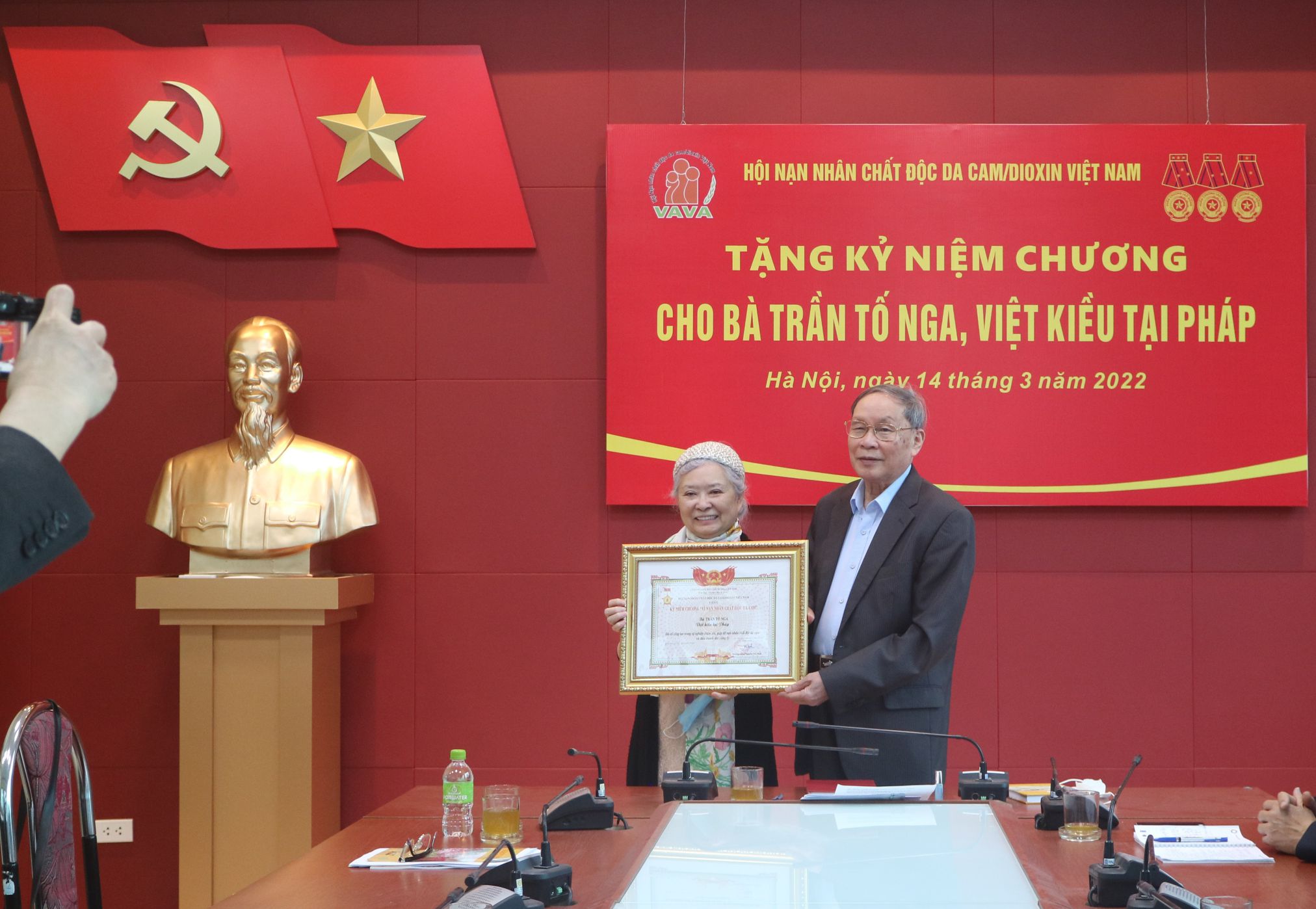 Để ghi nhận những đóng góp của bà đối với NNCĐDC Việt Nam, Chủ tịch Nguyễn Văn Rinh đã trao tặng Kỷ niệm chương “Vì NNCĐDC” cho bà Trần Tố Nga.