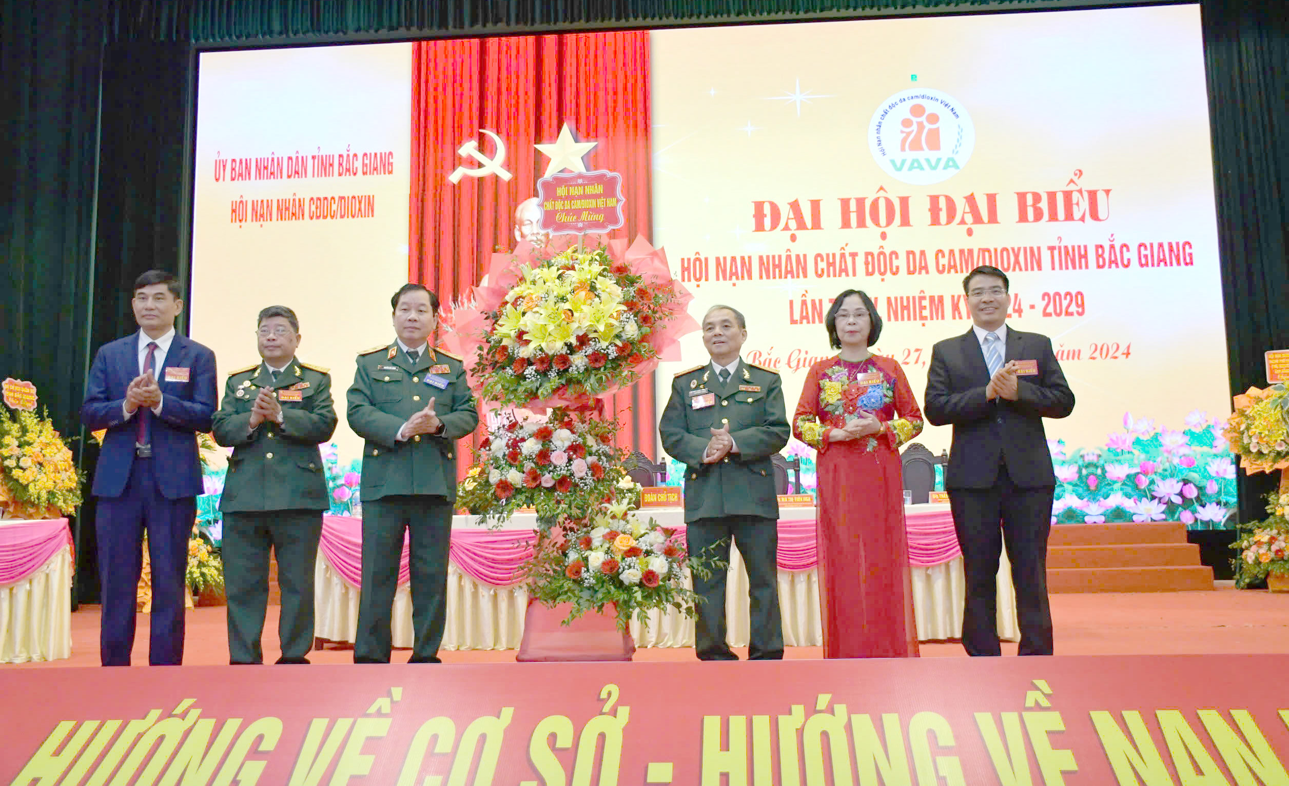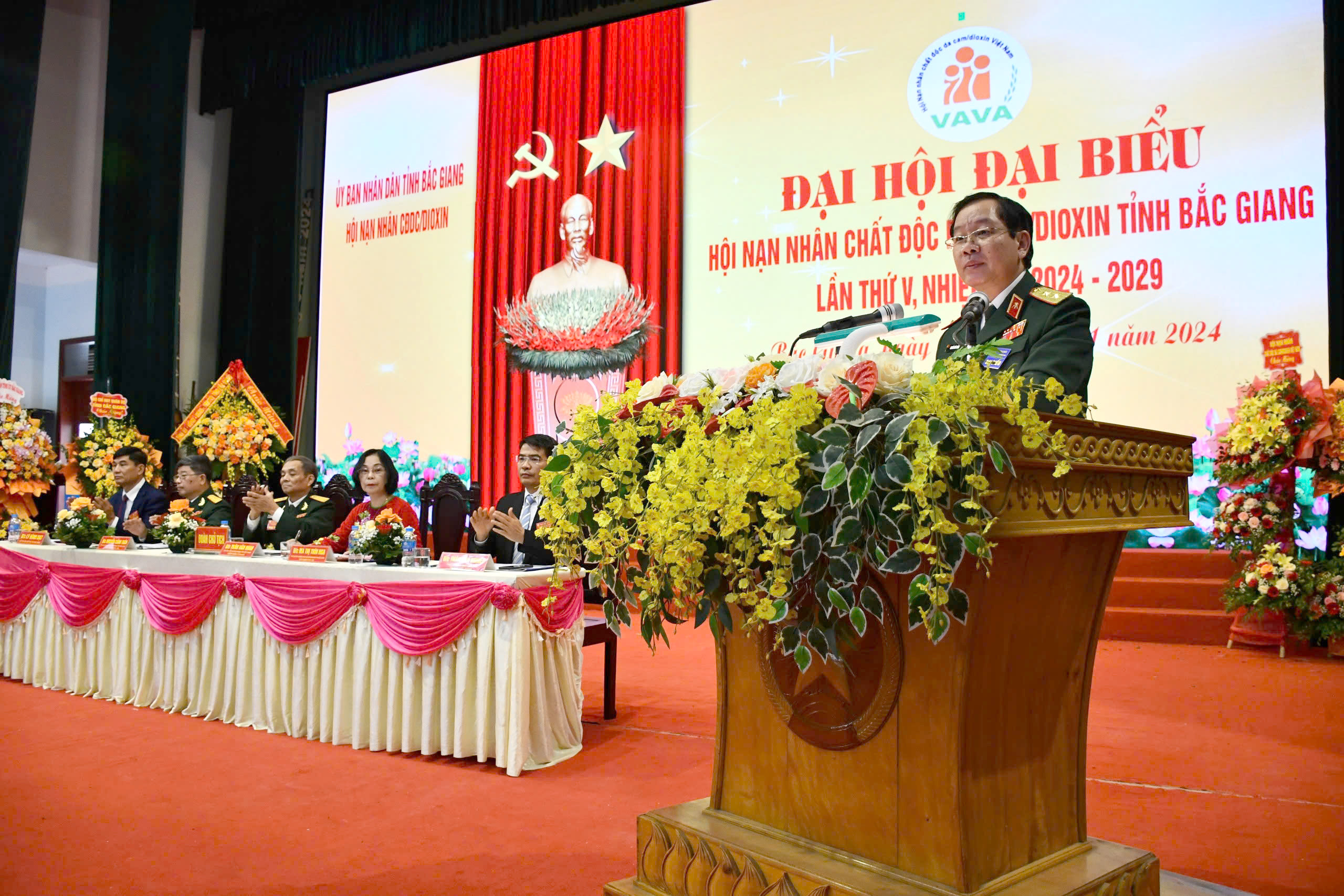 Phát biểu tại Đại hội, Trung tướng, Chủ tịch TƯ Hội Nguyễn Hữu Chính và Quyền Chủ tịch UBND tỉnh Mai Sơn gửi lời chúc sức khỏe tới NNCĐDC tỉnh Bắc Giang; cảm ơn lãnh đạo tỉnh đã luôn quan tâm, tạo điều kiện cho các cấp hội hoàn thành tốt nhiệm vụ được giao; đồng thời biểu dương các cấp Hội đã hoàn thành một nhiệm kỳ với nhiều thành tích xuất sắc trong tham mưu, tuyên truyền xây dựng hội, phát triển hội viên, vận động nguồn lực chăm sóc nạn nhân. Trong gần 20 năm thành lập, uy tín và vị thế của Hội ngày càng được khẳng định; Hội thực sự là ngôi nhà chung của NNCĐDC. Bước vào nhiệm kỳ mới, đề nghị Hội tiếp tục tuyên truyền thực hiện Chỉ thị số 43, hướng về cơ sở, vận động nguồn lực, chăm sóc, giúp đỡ nạn nhân ngày càng thiết thực và bền vững hơn, đáp ứng yêu cầu nhiệm vụ được giao…