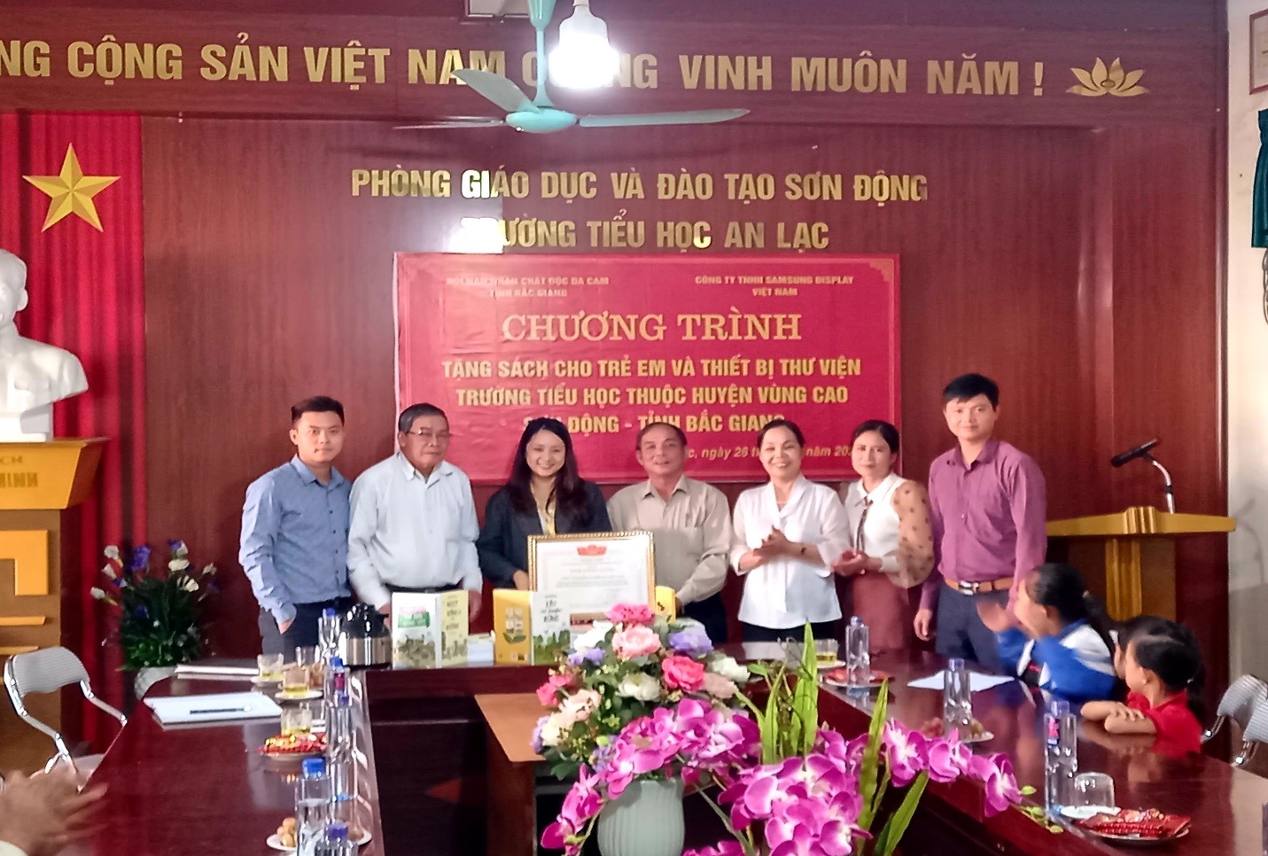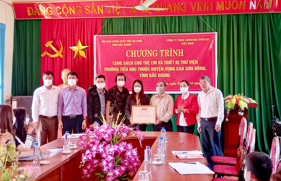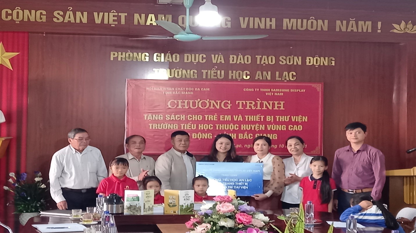 Ngày 26/10/2021, Thường trực Hội NNCĐDC/dioxin tỉnh Bắc Giang có ông Thân Văn Nhau - Chủ tịch Tỉnh hội, bà Ma Thị Thìn Nga - Phó Chủ tịch Tỉnh hội; bà Nguyễn Mỹ Hạnh - Đại diện Công ty TNHH SAMSUNG DISPLAY Việt Nam; ông Chu Bá Hưng - Trưởng phòng Giáo dục - đào tạo huyện, ông La Đức Lộc - Phó Chủ tịch Hội NNCĐDC huyện Sơn Động, lãnh đạo Đảng ủy, UBND xã, Ban Giám hiệu nhà trường, các thầy cô giáo, các em học sinh, tổ chức Hội cơ sở và cơ quan thông tin đại chúng của địa phương cùng dự chương trình (buổi sáng), trao tặng sách tại Trường Tiểu học Vân Sơn, xã Vân Sơn; buổi chiều trao tặng tại Trường Tiểu học An Lạc, xã An Lạc, huyện Sơn Động.