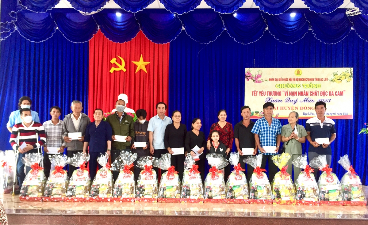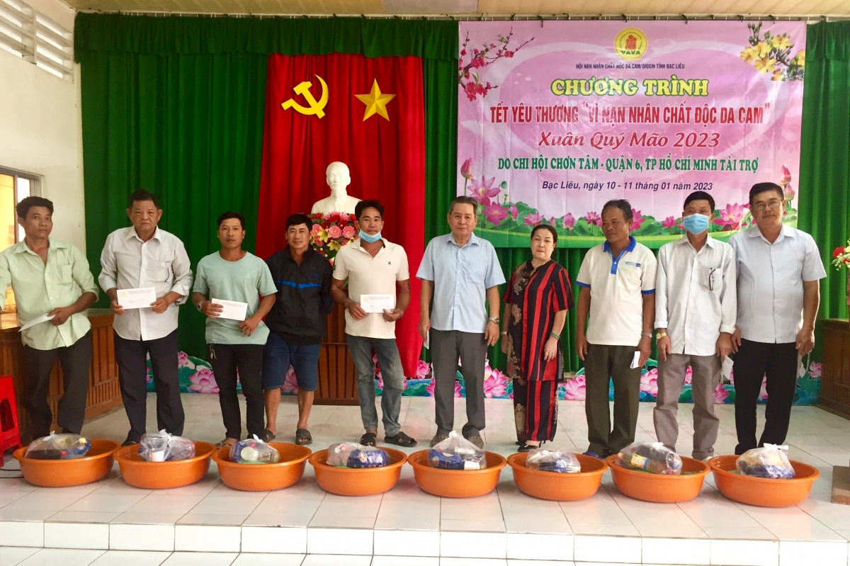 Các cấp Hội đã vận động các nhà hảo tâm, các mạnh thường quân, với tổng số tiền là 771.350.000 đồng (trong đó có hiện vật quy ra tiền là 375.850.000 đồng). Thành lập 4 đoàn, mời nhà tài trợ, lãnh đạo địa phương, Hội huyện và cơ sở thăm, tặng quà cho nạn nhân chất độc da cam tại 7 huyện, thị xã, thành phố trong tỉnh. Trong thời gian từ ngày 15 đến ngày 17 tháng 01 năm 2023 (nhằm ngày 24 đến 26 tháng chạp). Các đoàn đã gặp gỡ, thăm hỏi, động viên và trao tặng 1.715 suất quà gồm: tiền mặt và hiện vật; với tổng trị giá là 711.350.000 đồng. Đặc biệt Hội Từ thiện Phụ nữ Thành phố Hồ Chí Minh (Nhà tài trợ) đã trực tiếp cùng Tỉnh hội trao quà cho nạn nhân chất độc da cam ở thành phố Bạc Liêu và huyện Vĩnh Lợi; cùng đi với đoàn có Nhóm Nghệ sĩ là Đại sứ nhân ái của Hội Từ thiện Phụ nữ Thành phố Hồ Chí Minh biểu diễn văn nghệ phục vụ nạn nhân tạo nên không khí hào hứng, phấn khởi.