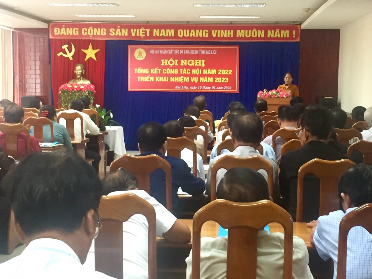Tổng kết năm 2022 với nguồn lực vận động xã hội được 2.845.127.000 đồng, đạt 142,2% so kế hoạch. Hội đã tổ chức thăm hỏi, động viên và tặng 3.476 suất quà; cất mới và sửa chữa 13 căn nhà “Mái ấm da cam”; giúp vốn sản xuất chăn nuôi không lãi cho 12 hộ; trao tặng 46 xe lăn, 72 suất học bổng, thăm bệnh, trợ giúp khó khăn đột xuất, phúng điếu từ trần 1.480 nạn nhân chất độc da cam với tổng trị giá 2.842.349.000 đồng. Hội nghị đã phát động thi đua lập thành tích chào mừng Đại hội Hội NNCĐDC/dioxin các cấp trong tỉnh tiến tới Đại hội đại biểu Hội NNCĐDC/dioxin Việt Nam và Tổng kết phong trào thi đua “Vì nạn nhân chất độc da cam” giai đoạn 2020 – 2022; có 05 tập thể và 12 cá nhân là cán bộ Hội các cấp và 2 mạnh thường quân được Chủ tịch UBND tỉnh tặng Bằng khen. Chủ tịch Tỉnh hội tri ân 2 nhà tài trợ, tặng quà 700.000đ/suất cho 14 nạn nhân chất độc da cam là cán bộ tham gia công tác Hội các cấp. Hội nghị báo cáo công tác kiện toàn tổ chức và kết quả lấy ý kiến bầu bổ sung Ủy viên Ban chấp hành 3 người (02 ủy viên BTV, 1 ủy viên BCH) đảm bảo đủ số lượng và chất lượng hoạt động.