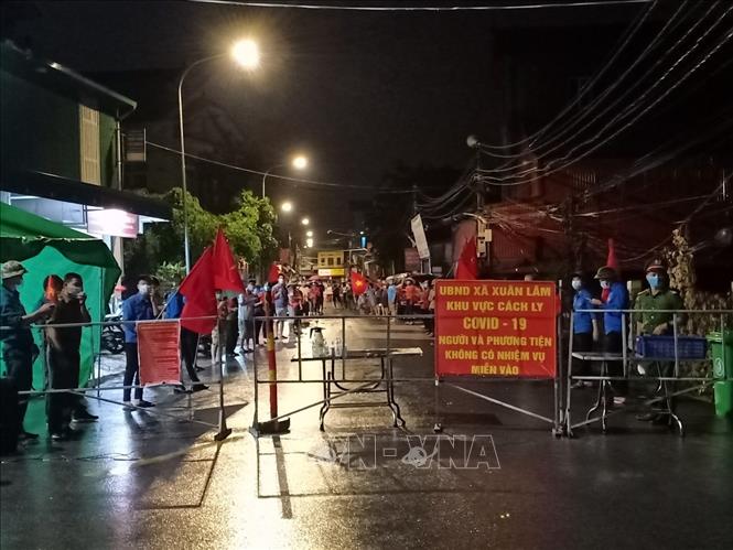 Chốt kiểm soát dịch bệnh tại xã Xuân Lâm trước khi gỡ phong tỏa. Ảnh: TTXVN phát