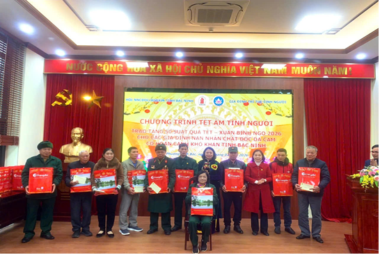 Nhân dịp tết nguyên đán Bính Ngọ năm 2026, theo kế hoạch của Tỉnh Hội, các cấp hội trong tỉnh tích cực vận động, kết nối, phối hợp để tổ chức nhiều chương trình giúp đỡ, thăm hỏi tặng quà cho NNCĐDC/dioxin trên địa bàn tỉnh Bắc Ninh.