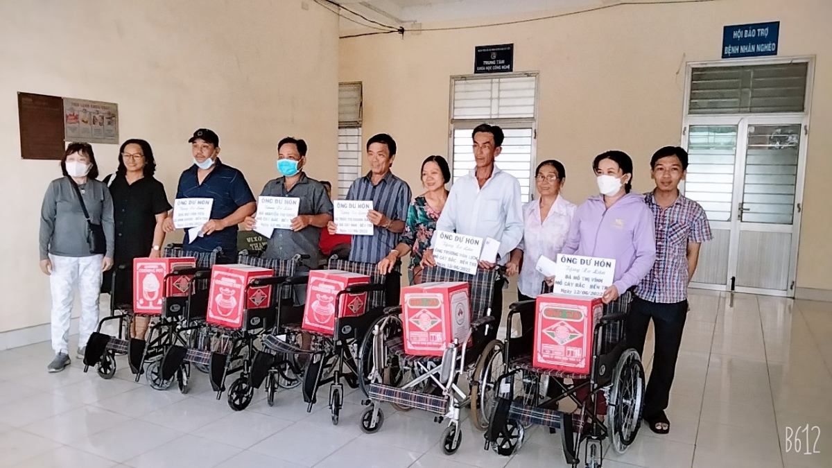 Ngày 13/6/2022, Hội Nạn nhân chất độc da cam/dioxin - Bảo vệ quyền trẻ em tỉnh Bến Tre phối hợp với Nhóm Từ thiện cô Ngọc Sương - TP. Hồ Chí Minh đến huyện Mỏ Cày Bắc, tỉnh Bến Tre trao 05 xe lăn cho nạn nhân chất độc da cam ở 2 huyện: Mỏ Cày Nam và Mỏ Cày Bắc, mỗi chiếc xe đạp trị giá 2.000.000 đồng, với tổng số tiền là 10.000.000 đồng, do Bác sĩ Dư Tuấn Quy - Bệnh viện nhi đồng 1 tài trợ.