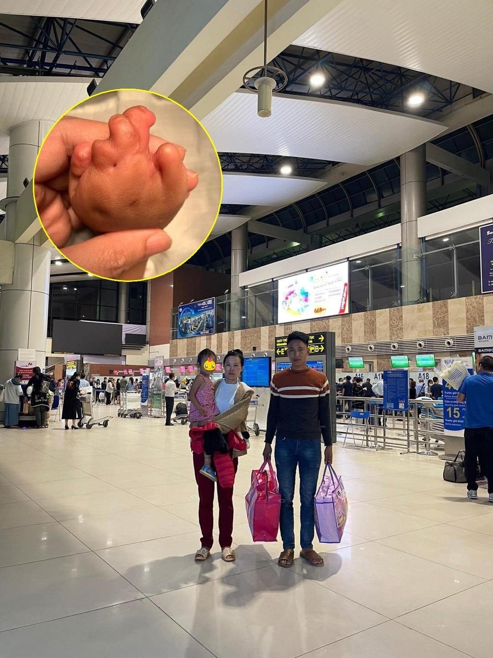 | Gia đình bé M.H. đã được giúp đỡ vào TP.HCM phẫu thuật tay cho con. (Ảnh: Dân Trí) |