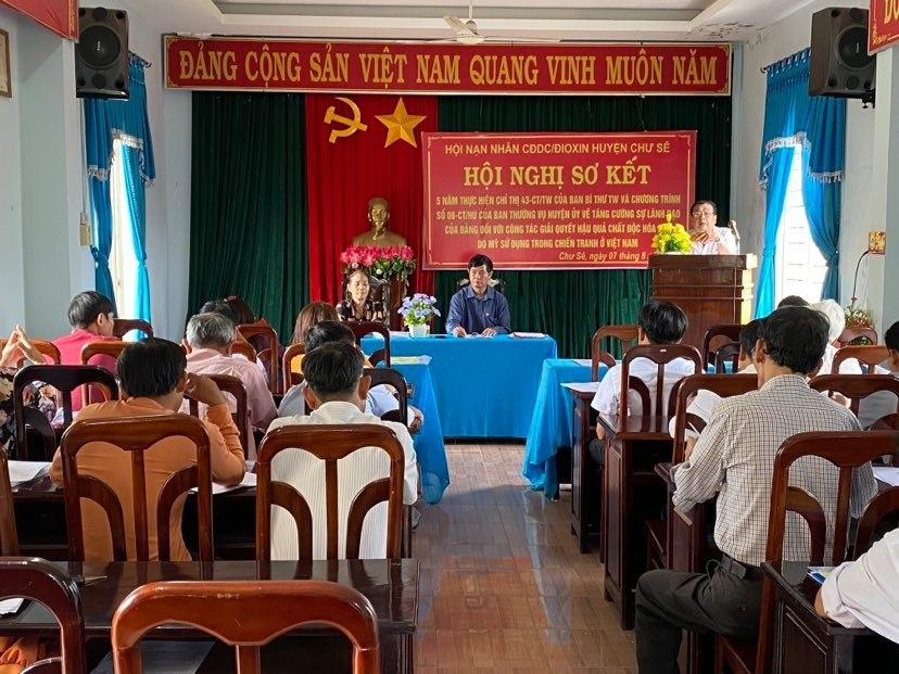 Vừa qua, Hội NNCĐDC/dioxin huyện Chư Sê, tỉnh Gia Lai đã tổ chức hội nghị Sơ kết 5 năm thực hiện Chỉ thị số 43/CT-TW ngày 14/5/2015 của Ban Bí thư Trung ương Đảng về Tăng cường sự lãnh đạo của Đảng đối với công tác giải quyết hậu quả chất độc hóa học do Mỹ sử dụng trong chiến tranh ở Việt Nam.