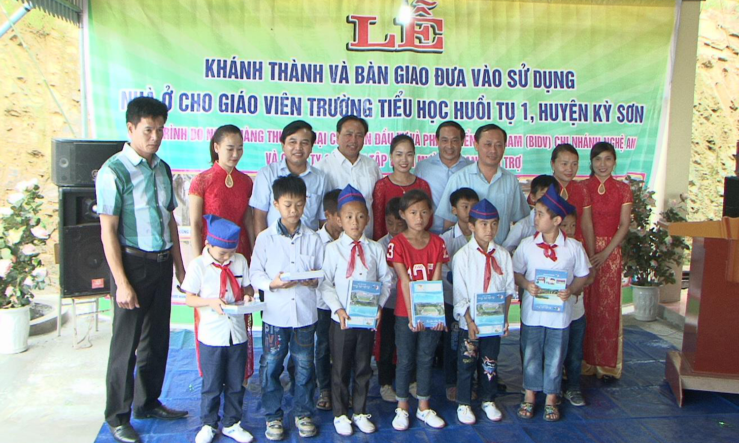 Ông Nguyễn Như Ý khánh thành nhà ở cho giáo viên và tặng quà cho học sinh trường Tiểu học Huồi Tụ 1, huyện Kỳ Sơn, Nghệ An.