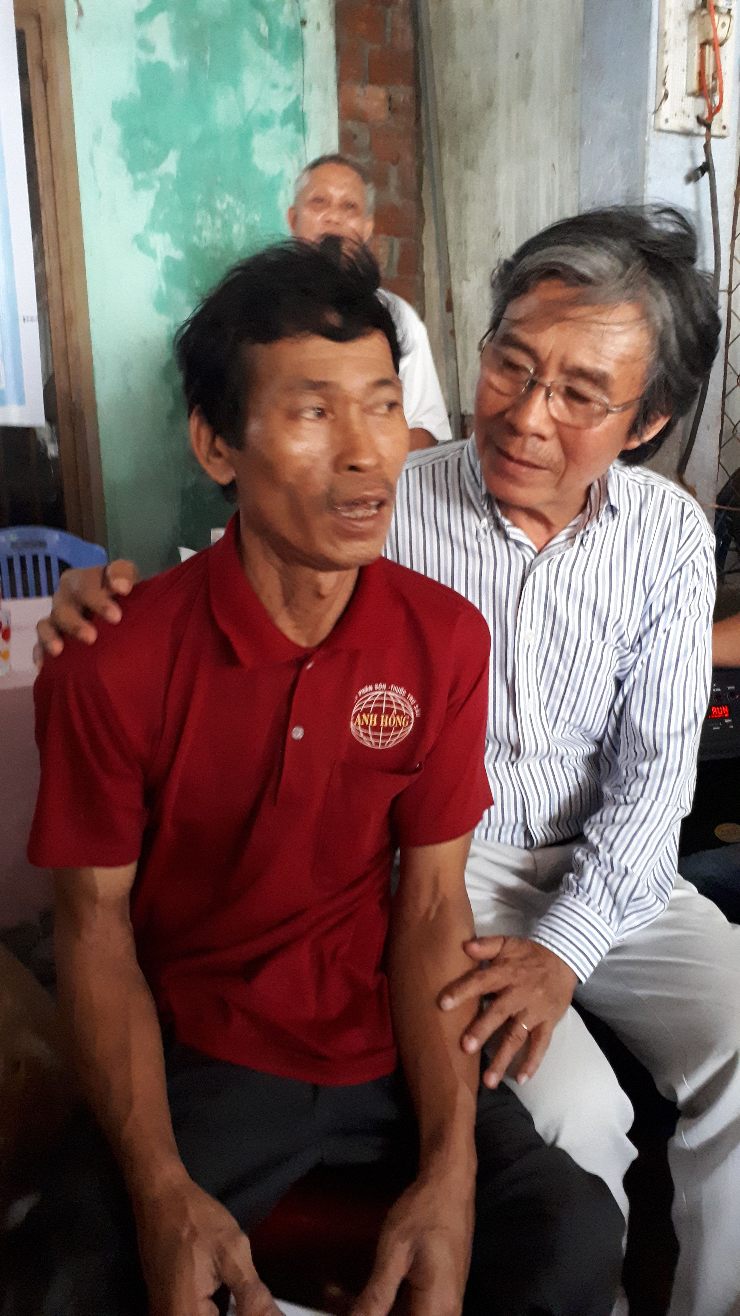 Ông Nguyễn Tân, Trưởng Ban Liên lạc Hội Đồng hương Núi Thành tại Tp HCM thăm nạn nhân