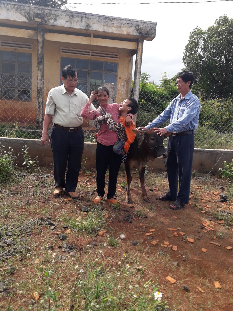 Ông Thủy trao bò giống cho gia đình chị Phan Thị Lý (làng U, xã Kông Htok)