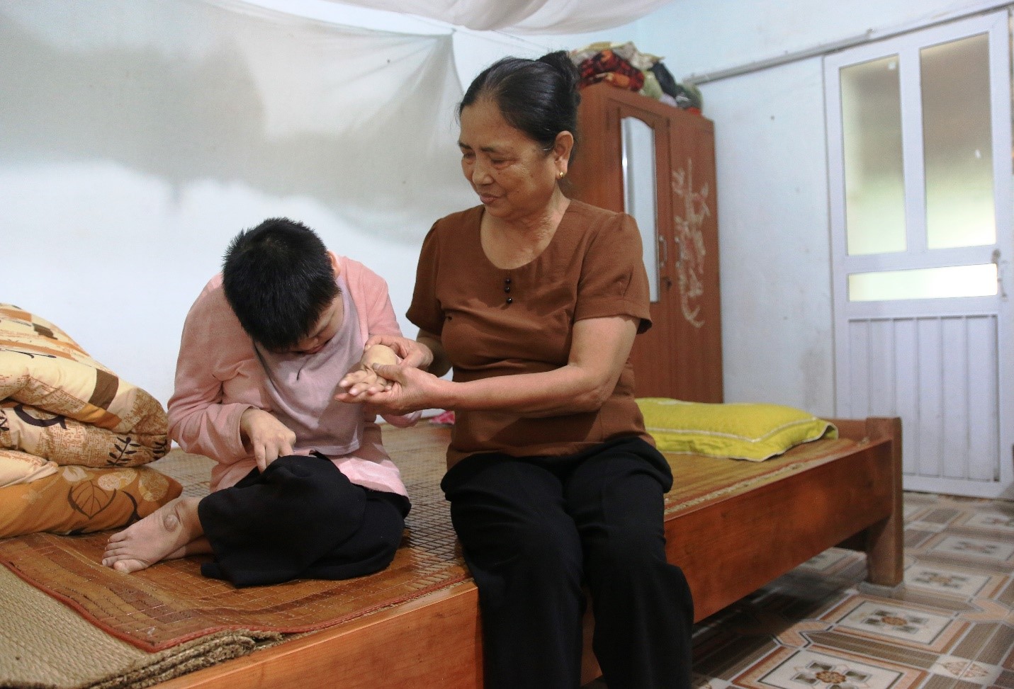 Nạn nhân Vũ Thị Hạnh (xã Đông Nam, huyện Đông Sơn, tỉnh Thanh Hóa) mang trong mình nhiều căn bệnh quái ác do di chứng của chất độc da cam.
