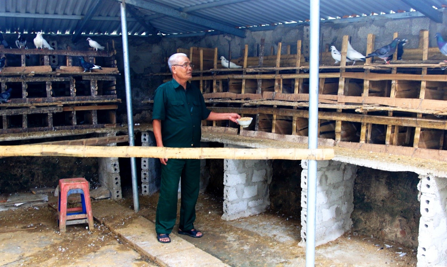 Mô hình nuôi chim bồ câu của gia đình nạn nhân chất độc da cam Vũ Tiến Sử (xã Đông Nam, huyện Đông Sơn, tỉnh Thanh Hóa) cho thu nhập ổn định