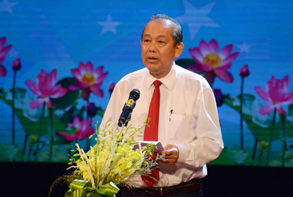 Thay mặt lãnh đạo Đảng và Nhà nước, tôi biểu dương và đánh giá cao Hội Nạn nhân chất độc da cam đã tổ chức chương trình này. Tôi cũng xin gửi đến các nạn nhân chất độc da cam và gia đình lời thăm hỏi ân cần, lời chúc sức khỏe, hạnh phúc.