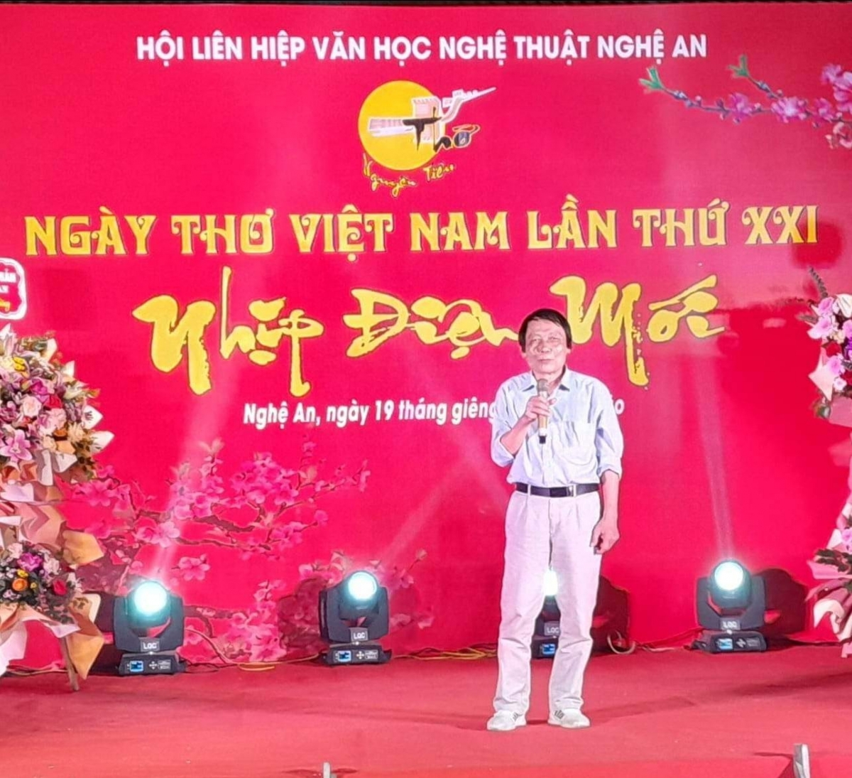 Dự Đêm Thơ có các ông Võ Văn Dũng – Phó Trưởng ban Tuyên giáo Tỉnh ủy Nghệ An; Trương Thiết Hùng – Phó Chủ tịch Ủy ban Mặt trận Tổ quốc tỉnh và đại diện lãnh đạo các sở ngành tỉnh Nghệ An.