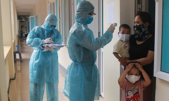 Kiểm tra thân nhiệt tại khu cách ly tập trung Đoàn an điều dưỡng 40. Ảnh: QĐND
