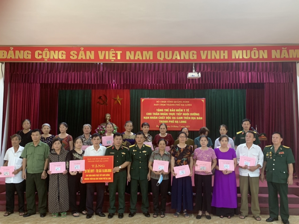 | Lãnh đạo BCHQS TP Hạ Long trao tặng thẻ BHYT cho thân nhân, người nuôi dưỡng NNCĐDC trên địa bàn thành phố. |