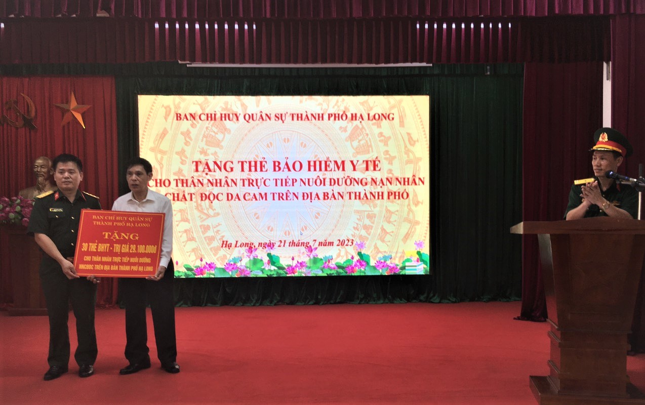 Trao thẻ BHYT cho thân nhân trực tiếp nuôi dưỡng, chăm sóc NNCĐDC trên địa bàn thành phố Hạ Long, là sự quan tâm, việc làm rất ý nghĩa, thiết thực của Ban CHQS thành phố Hạ Long. Có BHYT thân nhân trực tiếp nuôi dưỡng, chăm sóc NNCĐDC sẽ an tâm, giúp họ phần nào bớt nỗi lo khi bị ốm đau, nỗ lực vun vén cho cuôc sống gia đình vốn đang còn rất nhiều khó khăn, góp phần giữ gìn an sinh xã hội trên địa bàn.