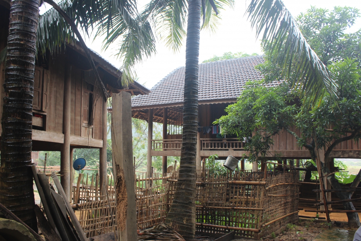 | Tiền con em gửi về được bà con xây dựng những ngôi nhà sàn khang trang. Bản đẹp như tranh |