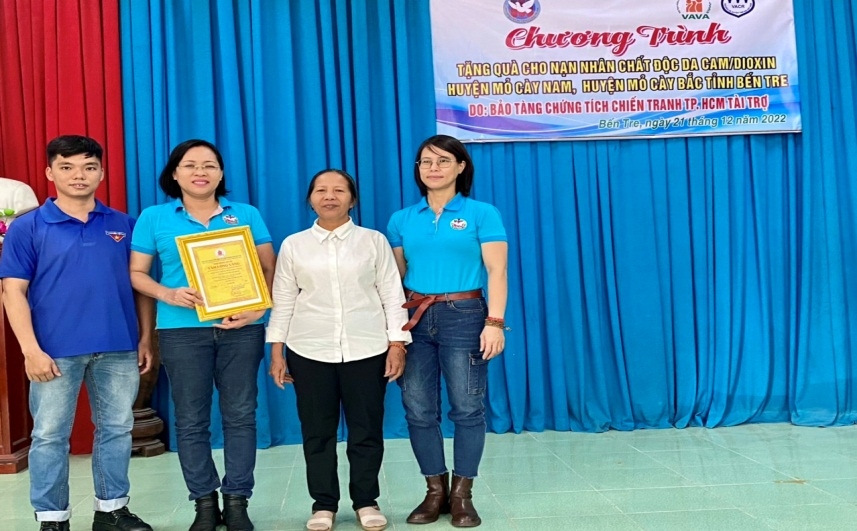 Tham gia đoàn có bà Đinh Ngọc Hằng, Phó Giám đốc Bảo tàng chứng tích chiến tranh, bà Lê Minh Thu, Chủ tịch Công đoàn Bảo tàng, bà Trịnh Thị Thanh Bình và bà Võ Thị Thủy, Phó Chủ tịch Hội NNCĐDC/dioxin- BVQTE tỉnh Bến Tre đã tham dự.