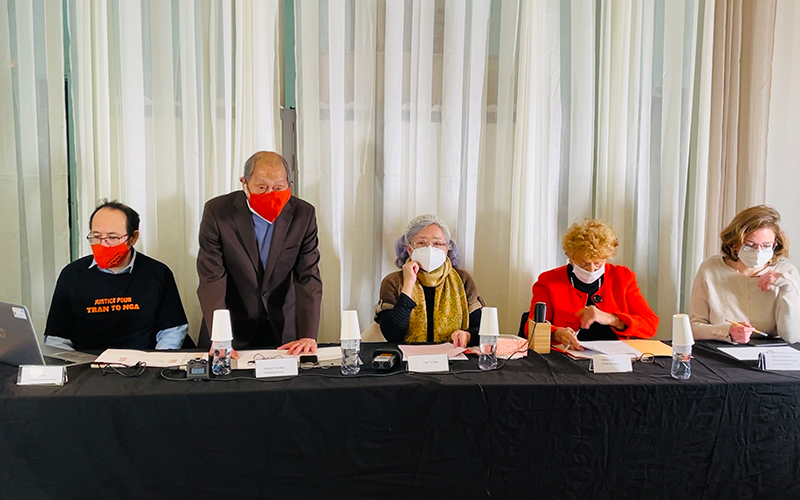 Bà Trần Tố Nga (giữa) tại buổi họp báo ở Paris trước khi diễn ra phiên tòa.