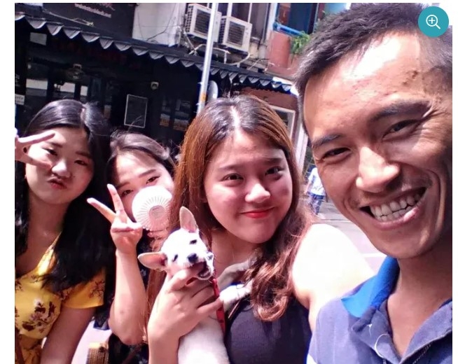 Những chú chó được anh Bảo nhặt về nuôi, chăm sóc luôn hấp dẫn du khách nước ngoài. (Ảnh: Nhân vật cung cấp).
