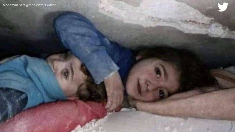 Một đoạn video trên Twitter ghi lại cảnh một bé gái và em trai bị mắc kẹt dưới đống đổ nát. Cô bé đã đặt tay lên đầu em trai để che chắn cho cậu bé trong khi chờ đợi lực lượng cứu hộ tới giải cứu.