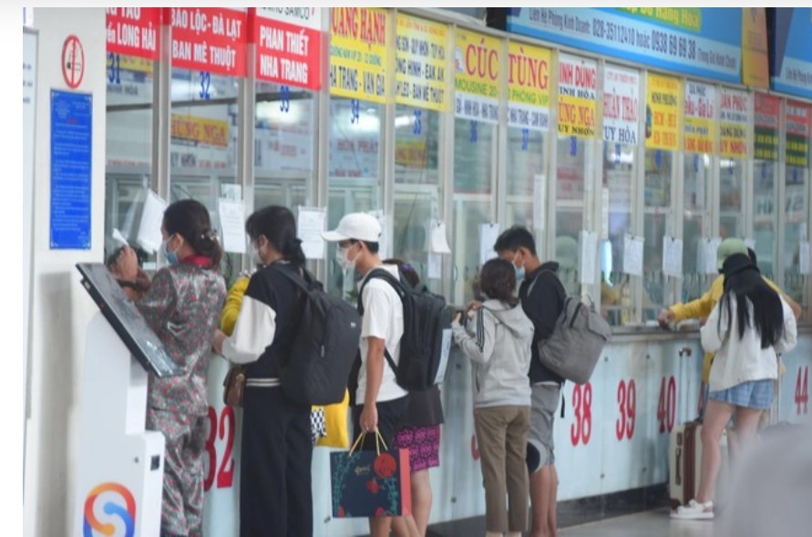 | Hành khách mua vé tại bến xe Miền Đông (quận Bình Thạnh). |