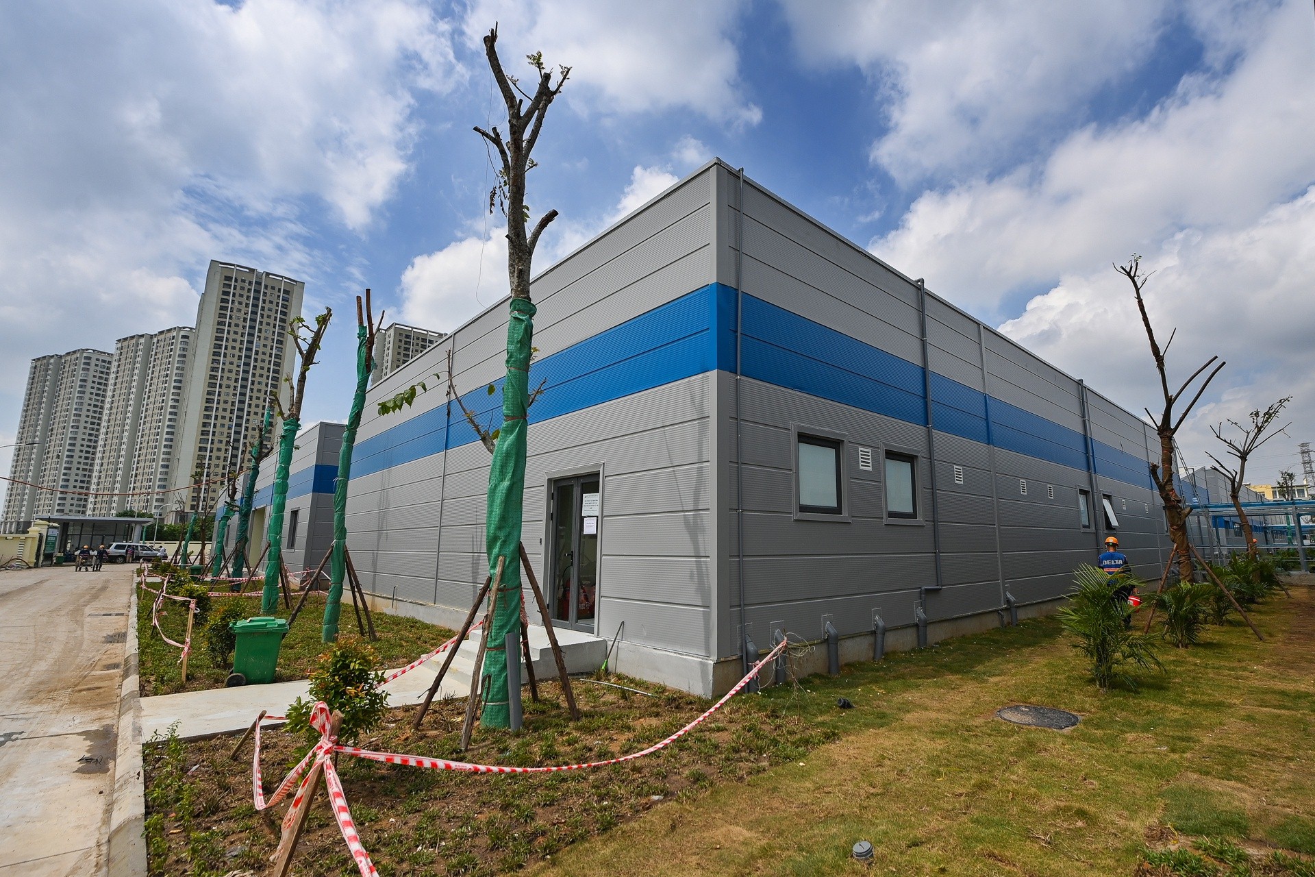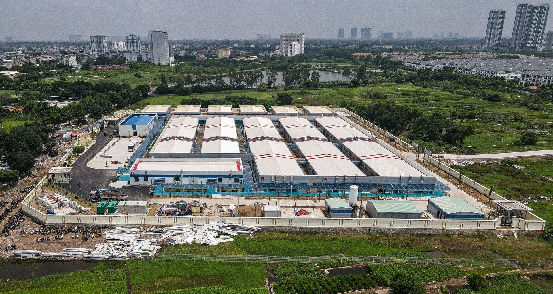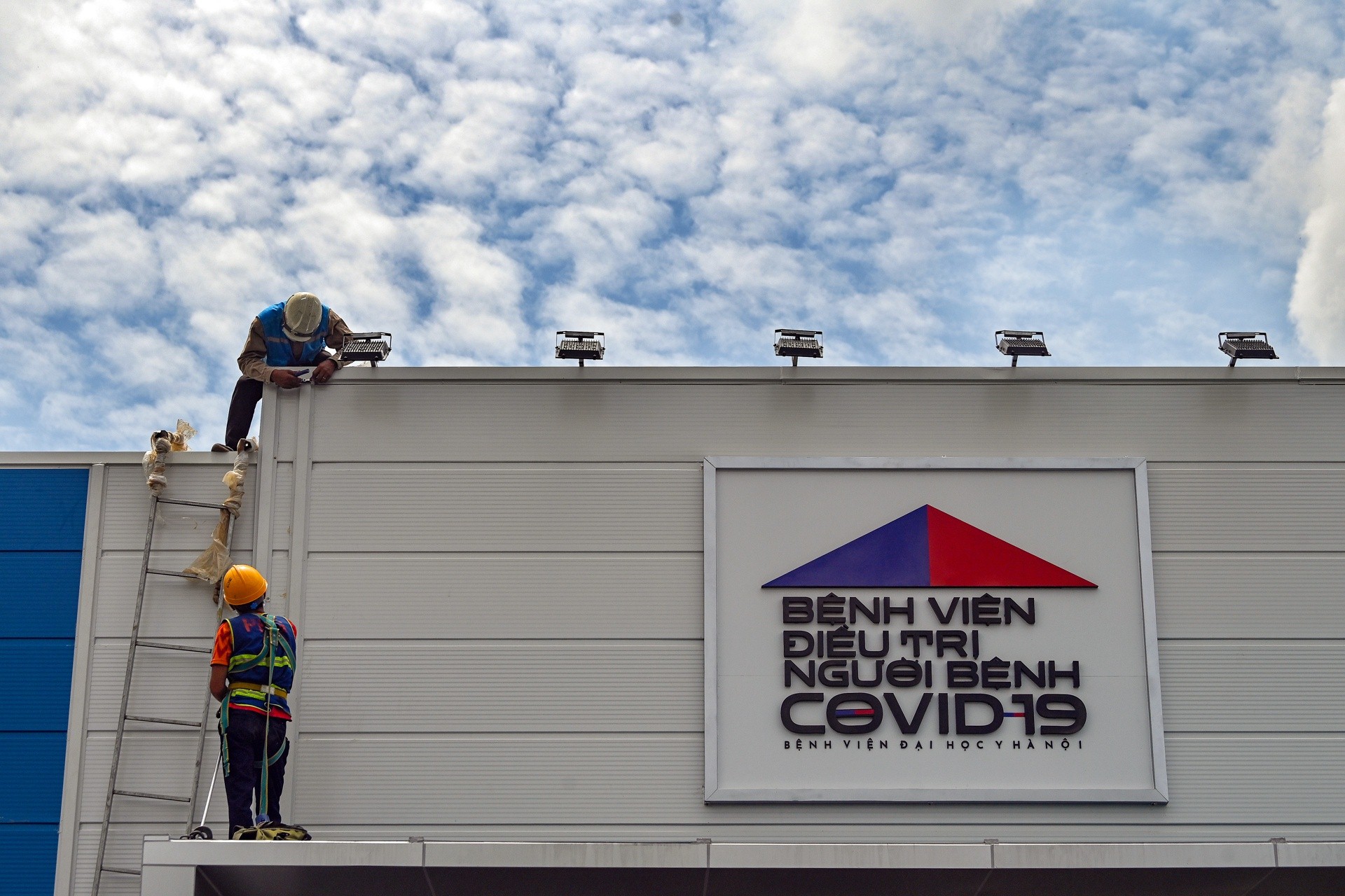 Sau hơn một tháng xây dựng, Bệnh viện điều trị người bệnh mắc Covid-19 nặng và nguy kịch tại quận Hoàng Mai, Hà Nội, đang được hoàn thiện những công đoạn cuối cùng để đưa vào sử dụng.