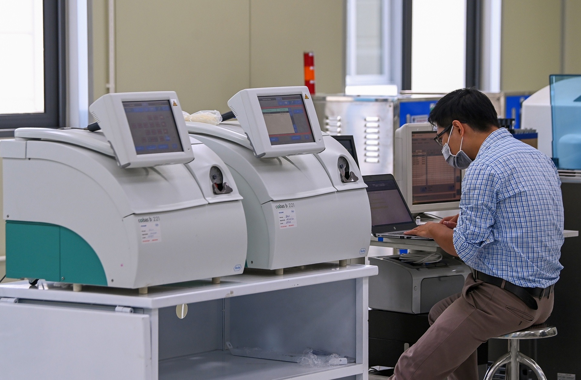 Khu vực xét nghiệm đang được hoàn thiện những công đoạn cuối để khớp nối hệ thống.