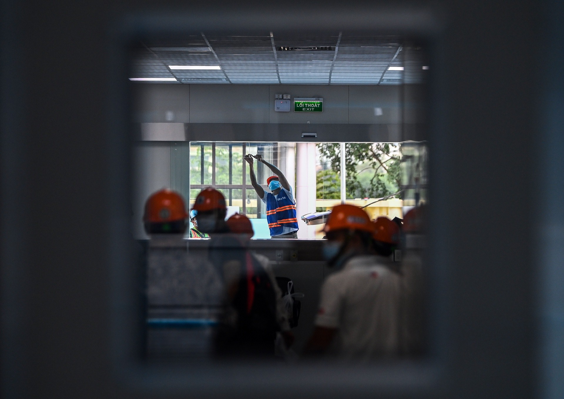 Các công nhân thi công 3 ca liên tục mỗi ngày để đảm bảo tiến độ dự án. Họ sẽ được áp dụng quy trình "một cung đường, hai điểm đến" để đảm bảo hạn chế tiếp xúc, tránh nguy cơ lây nhiễm virus SARS-CoV-2.