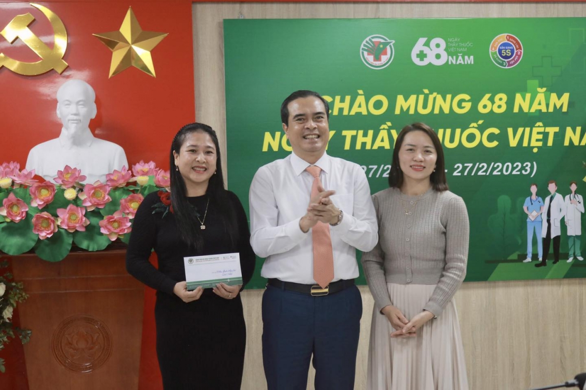 | Bác sĩ CKII Nguyễn Hồng Trường tặng quà nhân viên trong Lễ kỷ niệm Ngày thầy thuốc Việt Nam |