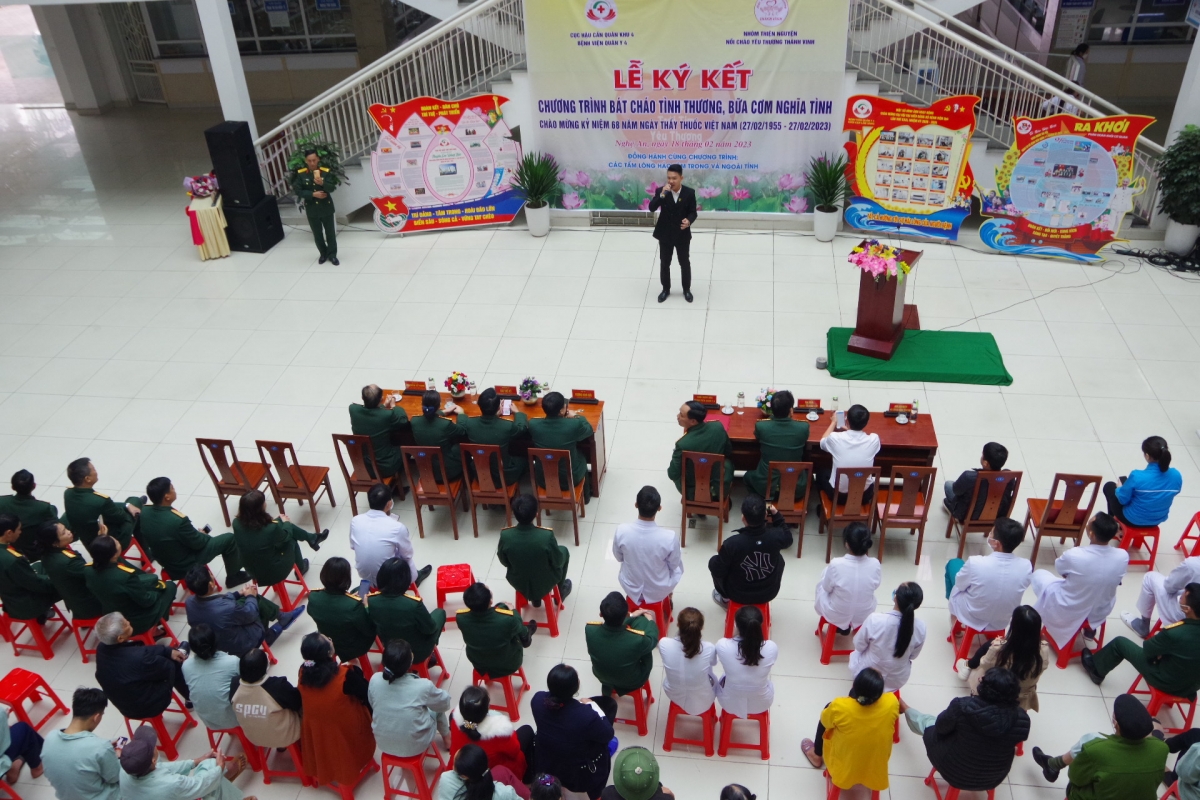 Ngày 18/2/2023, tại Bệnh viện Quân y 4 (Cục Hậu cần Quân khu 4), trên địa bàn xã Hưng Lộc, thành phố Vinh, tỉnh Nghệ An đã diễn ra Lễ ký kết hoạt động Chương trình “Bát cháo tình thương, bữa cơm nghĩa tình”. Tham dự có Thủ trưởng Cục Hậu cần Quân khu 4, Đại biểu Phòng Quần chúng, Cục Chính trị; Ban Giám đốc, Chủ nhiệm, Phó chủ nhiệm các Khoa, Ban; cán bộ y, bác sỹ; đại biểu chính quyền xã Hưng Lộc và đại diện nhóm thiện nguyện “Nồi cháo yêu thương Thành Vinh”.