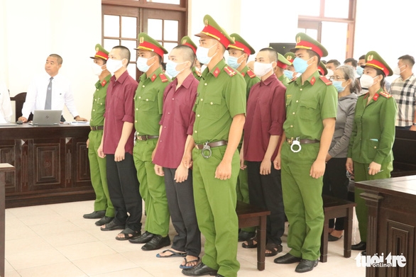 | Các bị cáo tại phiên tòa - Ảnh: AN LONG |