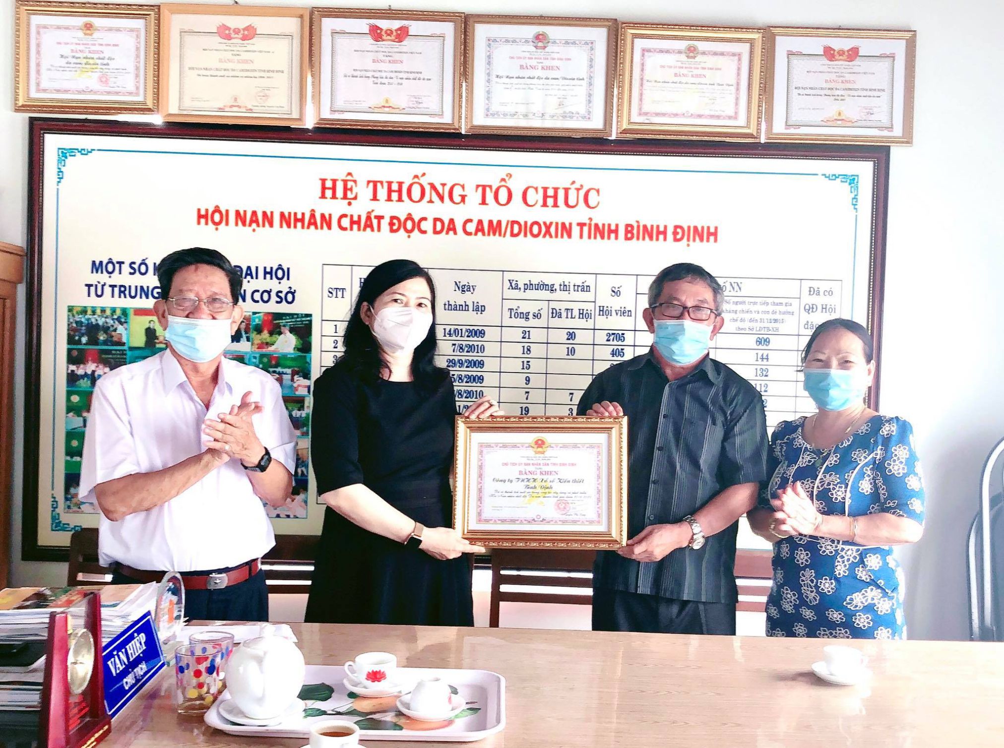 Nhân dịp kỷ niệm 60 năm Thảm hoạ da cam ở Việt Nam, Tỉnh hội được Trung ương Hội tặng 05 Bằng khen và 14 Kỷ niệm chương; Uỷ ban nhân dân tỉnh tặng 05 Bằng khen cho các tập thể, cá nhân có nhiều đóng góp trong công tác chăm sóc, giúp đỡ NNCĐDC giai đoạn 2016-2021./.